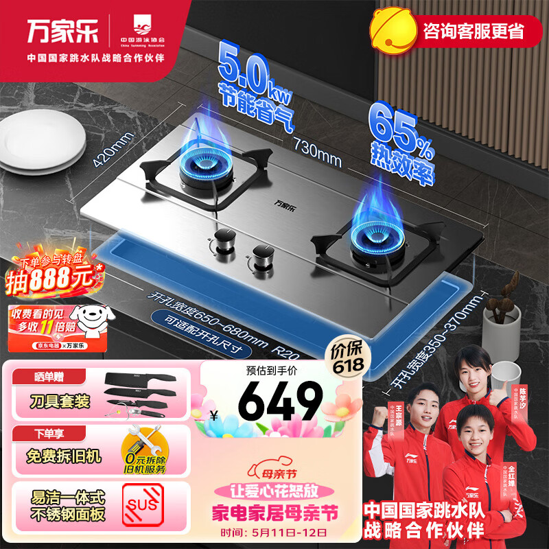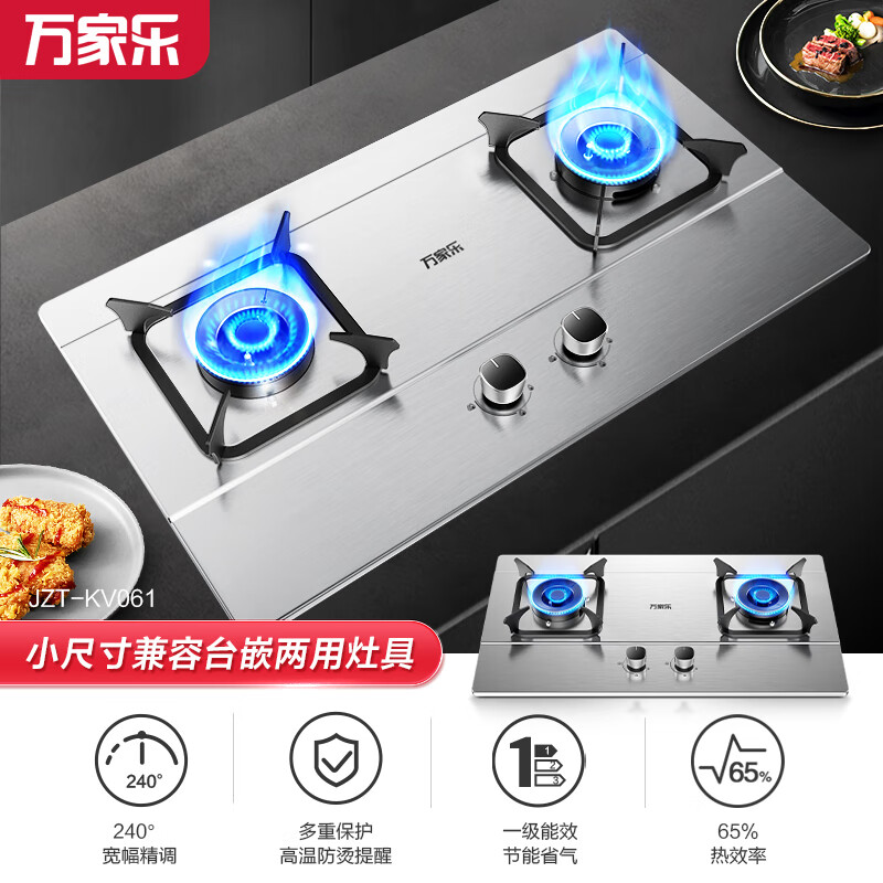 万家乐燃气灶 5.0kW大火力天然气灶猛火灶 不锈钢燃气灶 台嵌两用双灶 家用燃气灶具JZT-KV061天然气价格:749.00元!