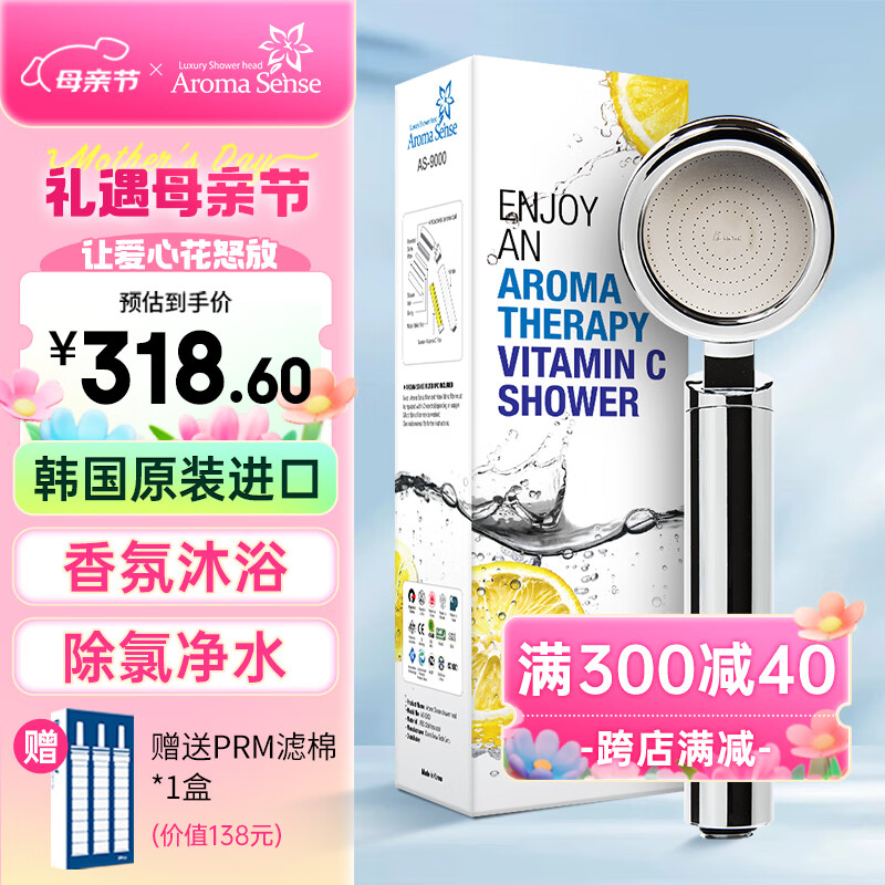 Aroma Sense淋浴花洒喷头增压韩国进口活性碳过滤除氯净水加压手持莲蓬头 AS9000花洒银色标配价格:388.00元!