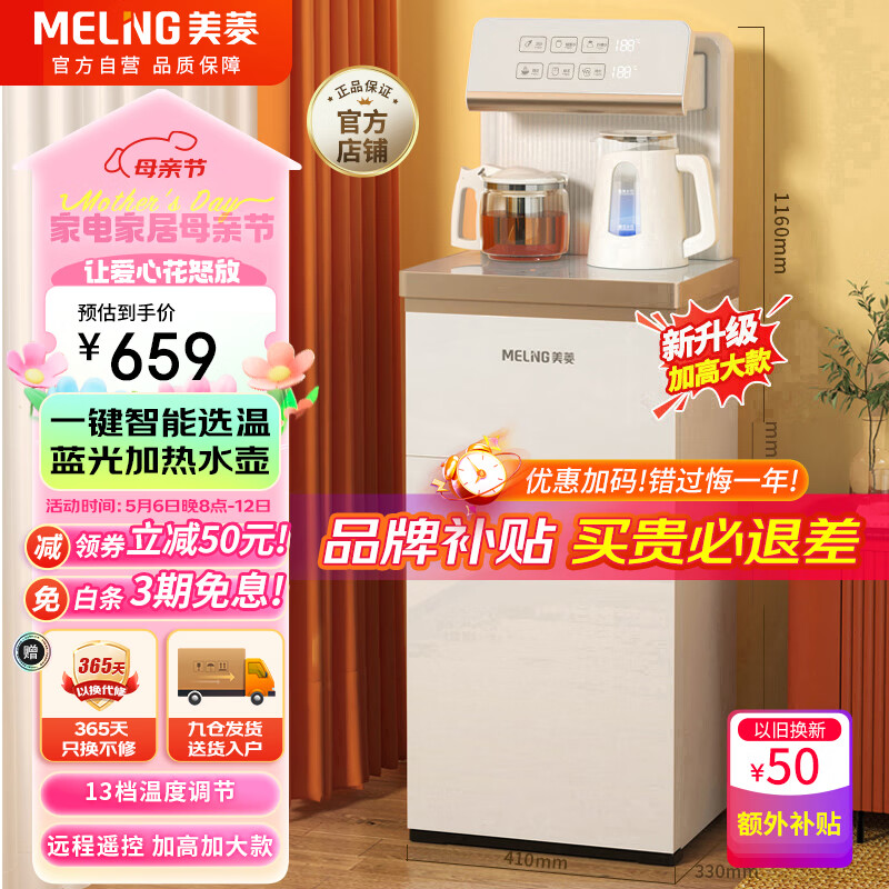 美菱(MeiLing)茶吧机家用饮水机智能多功能遥控茶吧立式桶装水下置式高端大款【冷热型】白金系列MY-C561B价格:699.00元!