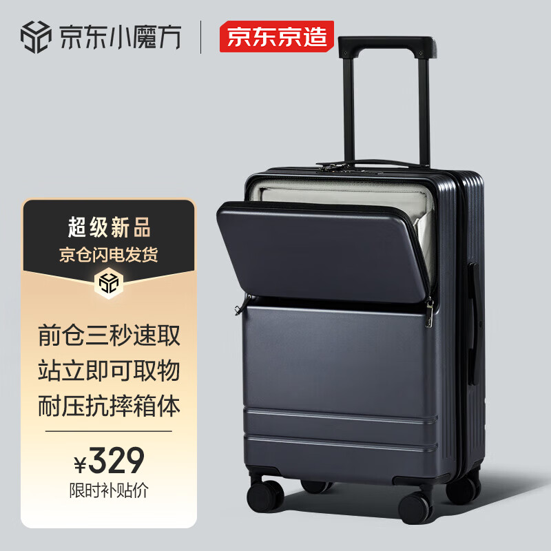 京东京造 商务前开盖行李箱Pro 20英寸拉杆箱男女通勤差旅登机皮箱 石墨灰价格:329.00元!
