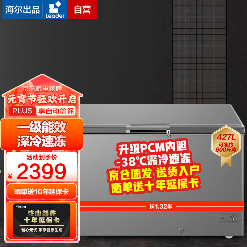 海尔出品冰柜家用商用大容量减霜80%一级能效节能省电冷冻柜BC/BD-427GLPT[家电]价格:2399.00元!