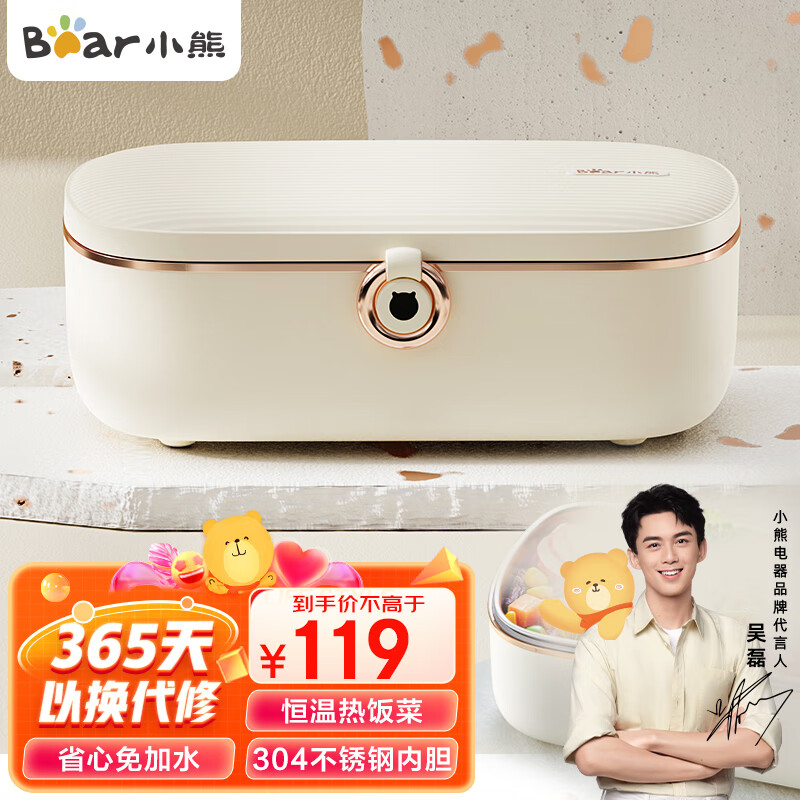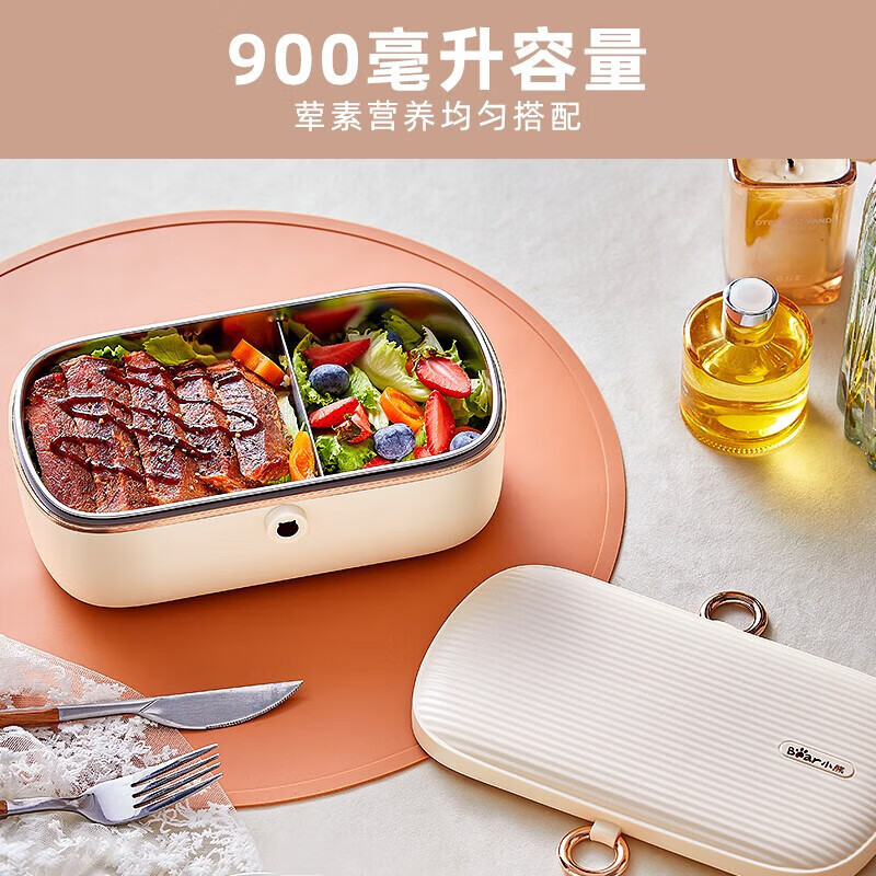 小熊(Bear) 电热饭盒 加热饭盒 上班族便携式免注水加热饭盒可插电保温饭盒 上班自热饭盒热饭神器 DFH-P09E5 优雅白 0.9L价格:119.00元!