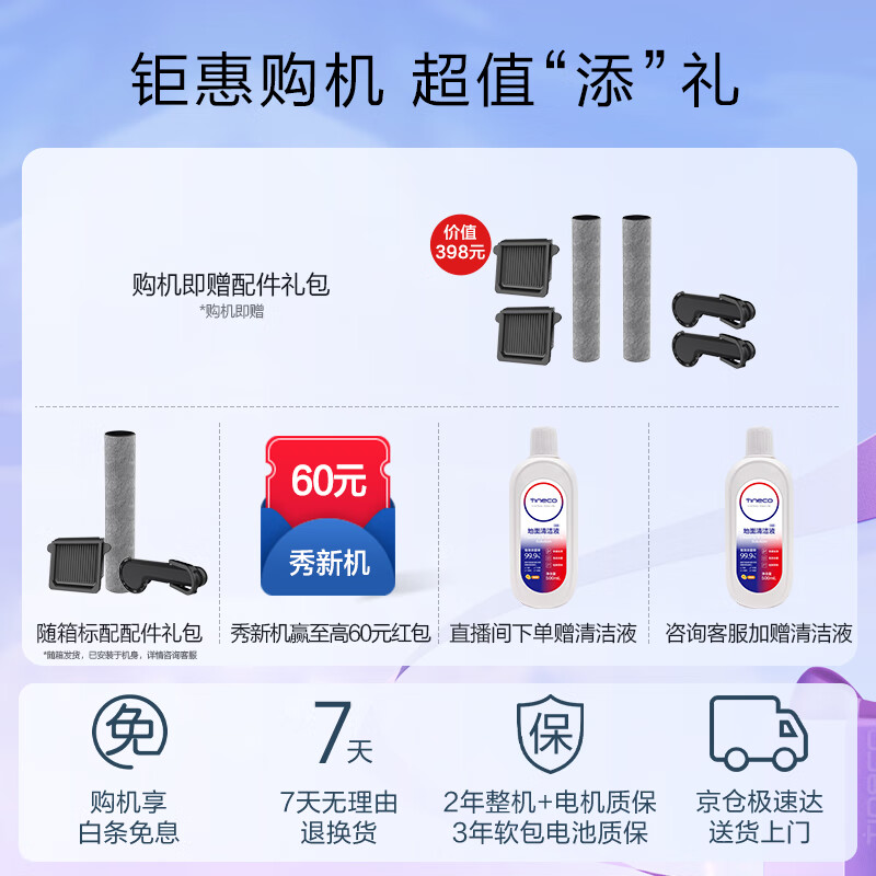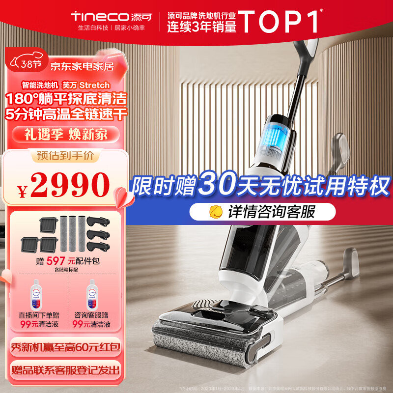 添可(TINECO)无线智能洗地机芙万Stretch 180°躺平高温全链速干吸拖一体手持吸尘洗地机价格:2990.00元!
