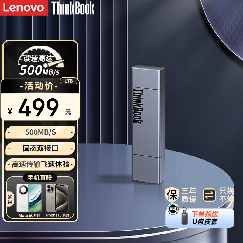 ThinkPad联想 1TB Type-C USB3.0 双接口固态U盘 500MB/s高速优盘 电脑手机直连 TB30价格:499.00元!