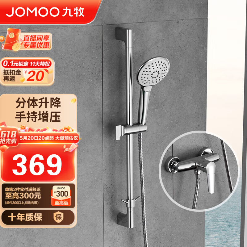 九牧 JOMOO 可升降花洒浴室花洒淋浴器套装宿舍 家用洗澡神器35287价格:369.00元!