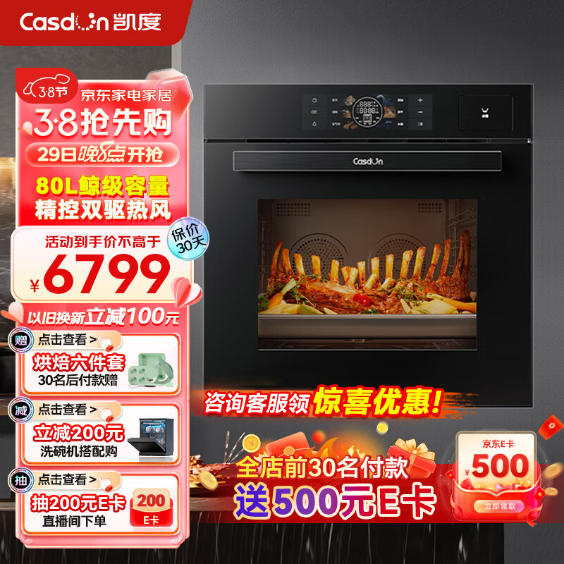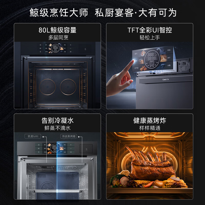 凯度(CASDON)80L嵌入式蒸烤一体机 双热风家用 蒸烤炸三合一 蒸烤箱 SR80DD-GJ01价格:6799.00元!