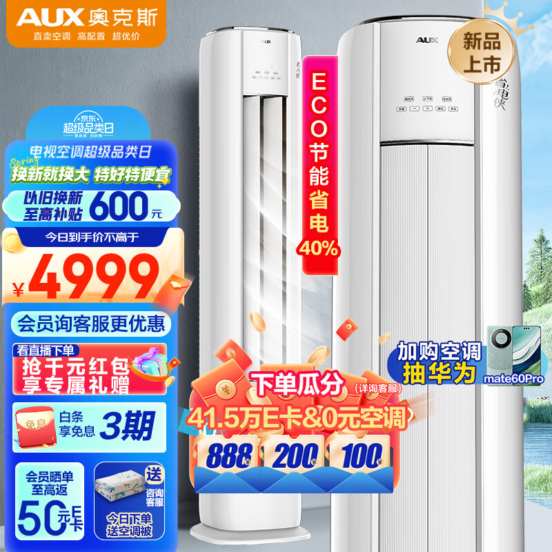 奥克斯3匹 省电侠 新1级能效 ECO节能 升级大风口 立柜式空调柜机KFR-72LW/BpR3GQS1(B1)强劲超远风价格:4999.00元!