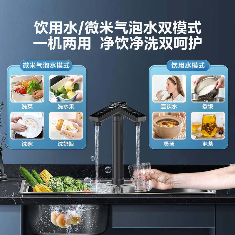 美的净水器家用净水机元气1000G 双出水微米气泡水净洗 5年陶氏RO反渗透净水器厨下式直饮机 2.73L/分价格:3299.00元!