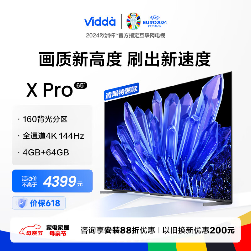 Vidda X65 Pro 海信电视 65英寸 144Hz游戏电视 160背光分区 4G+64G 智能屏巨幕以旧换新65V3K-PRO价格:4399.00元!