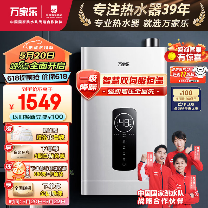 万家乐13升燃气热水器天然气增压零冷水一级能效冷凝式智慧双伺服恒温以旧换新JSLQ22-13DLU2价格:2899.00元!