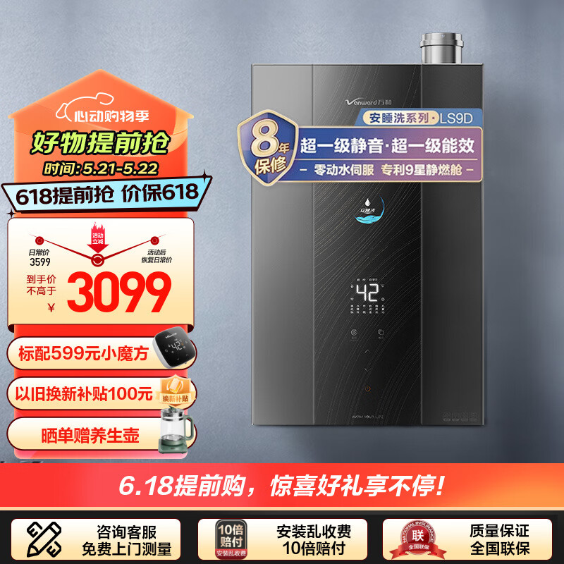 万和(Vanward)燃气热水器16升零冷水小体积水量伺服器恒温小魔方智控安睡洗超一级静音能效天然气 JSLQ27-LS9D16价格:3099.00元!