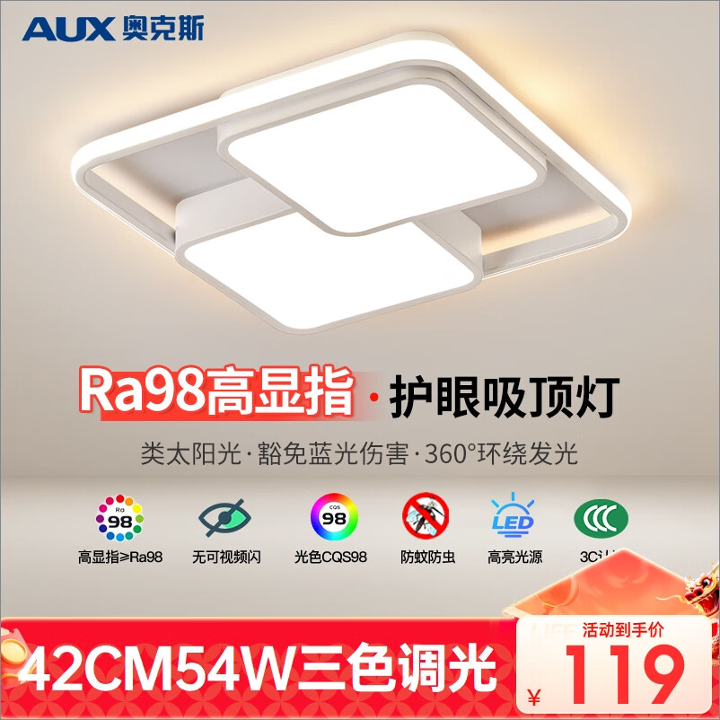 奥克斯(AUX)吸顶灯led卧室灯具客厅灯饰书房阳台灯薄款北欧现代简约ZH-54WS-G价格:119.00元!