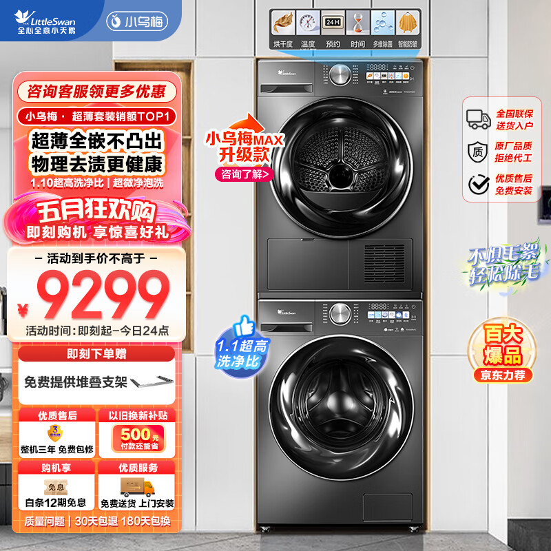 小天鹅(LittleSwan)洗烘套装10KG滚筒洗衣机全自动+热泵烘干机 超薄全嵌【小乌梅】TG100RVIC+S83【咨询了解升级款】价格:9299.00元!