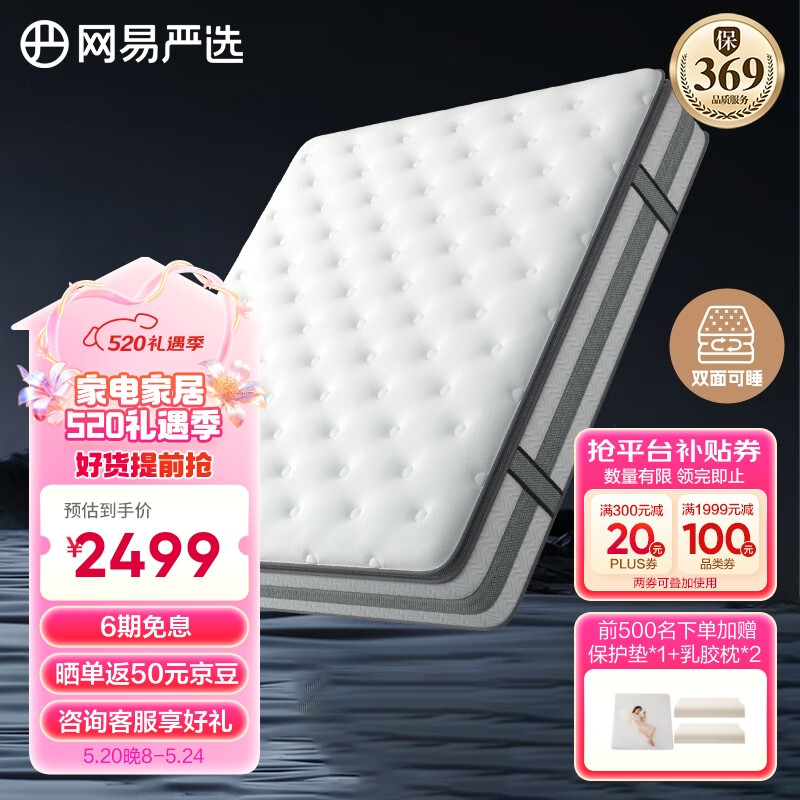 网易严选AB面弹簧床垫2米*2米 进口乳胶床垫 旗舰款 抑菌防螨 独袋弹簧价格:2999.00元!