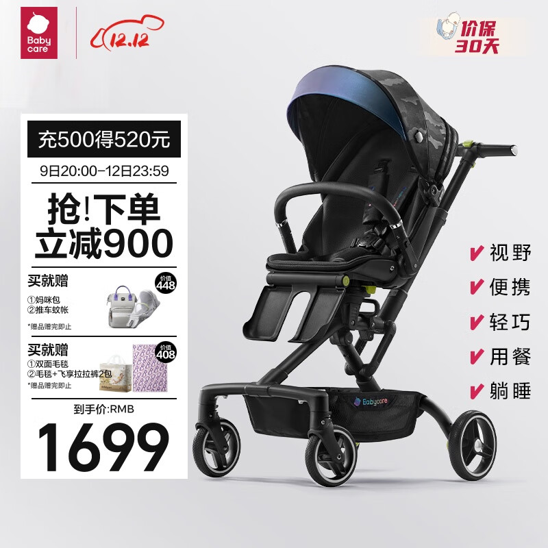 babycare婴儿头等舱推车遛娃遛神器溜娃童车可坐可躺双向推行-暮夜黑价格:2599.00元!