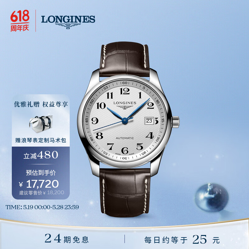 浪琴(LONGINES)瑞士手表 名匠系列 机械皮带男表 520情人节礼物 L27934783价格:17720.00元!
