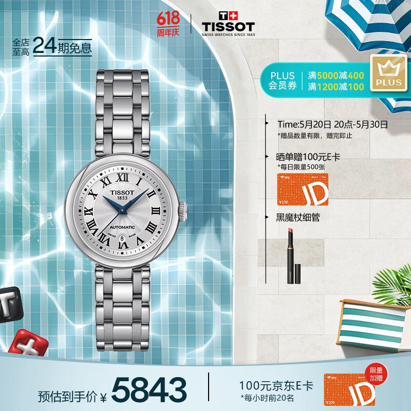 天梭(TISSOT)手表 小美人系列钢带机械女表 520送女友T126.207.11.013.00价格:6150.00元!