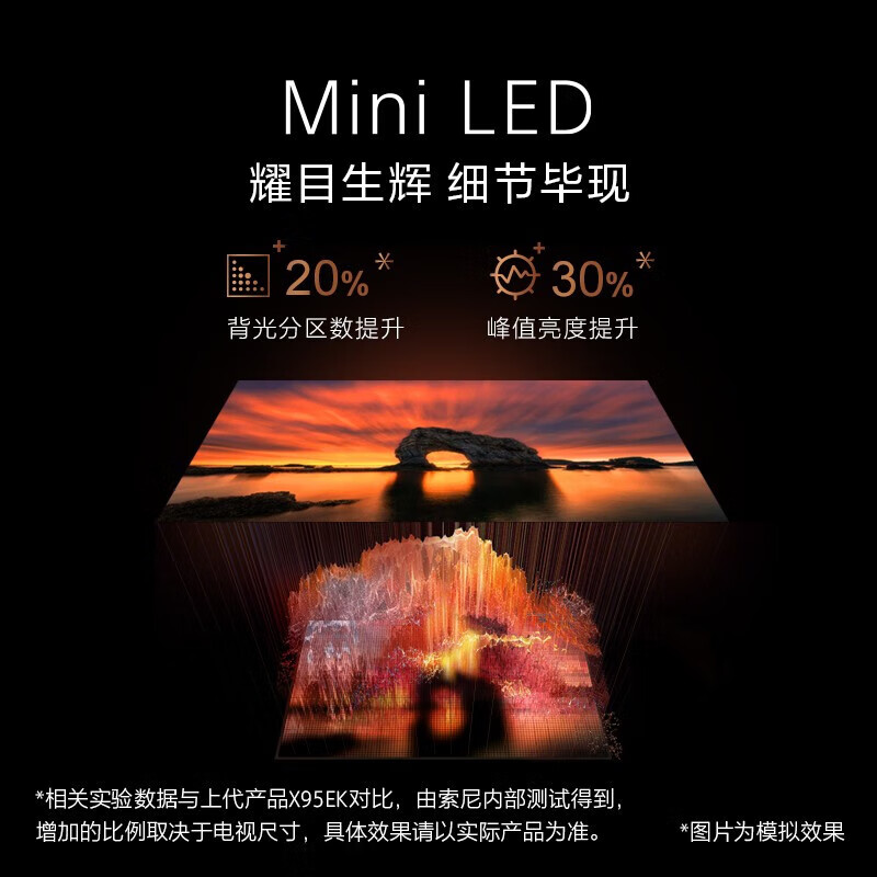 索尼(SONY)XR-65X95EL 65英寸 Mini LED 大师级控光 边框发声 AI摄像头智能电视价格:15199.00元!