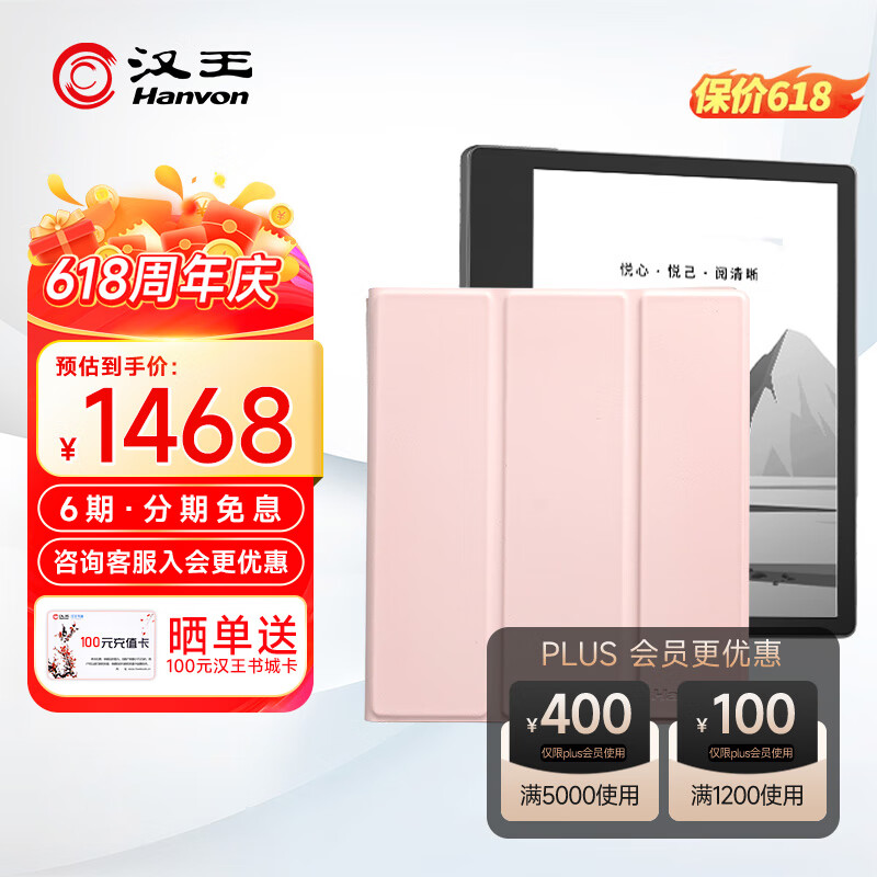 汉王(Hanvon) Clear 7英寸电子书阅读器 墨水屏电纸书 看书便携阅读电子本4+64版樱花粉支架保护套.套装价格:1468.00元!
