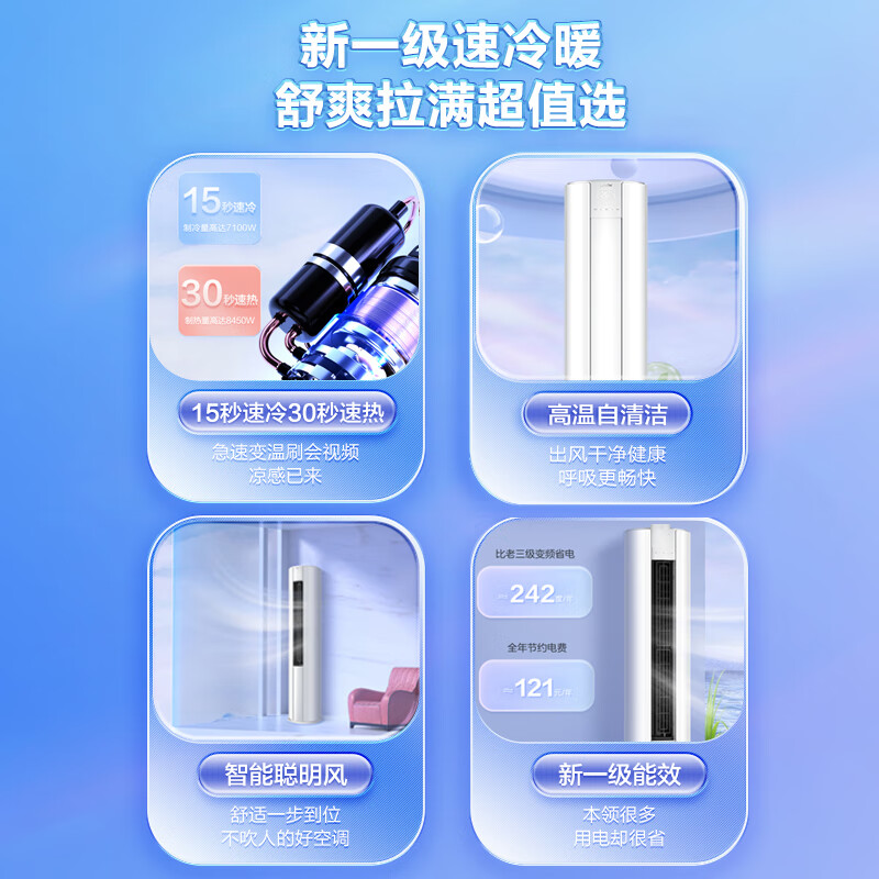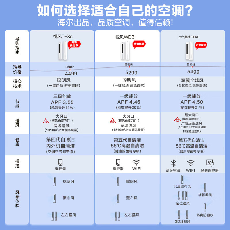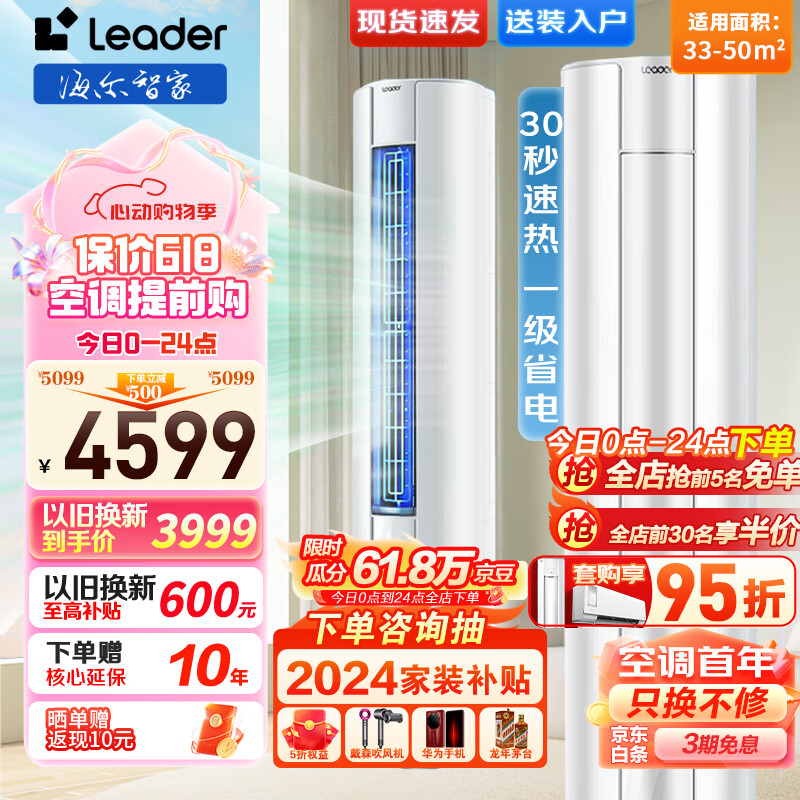 Leader空调柜机海尔出品3匹新一级能效变频冷暖APP智控客厅立柜式自清洁智能防直吹 以旧换新72WDB81价格:4599.00元!