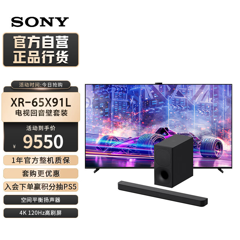 索尼(SONY)XR-65X91L+HT-S400 影音娱乐套装 杜比音效 智能环绕 大功率无线低音炮 家庭影院 回音壁价格:8569.00元!