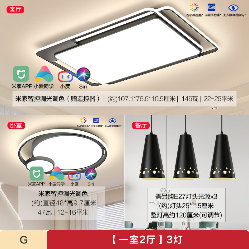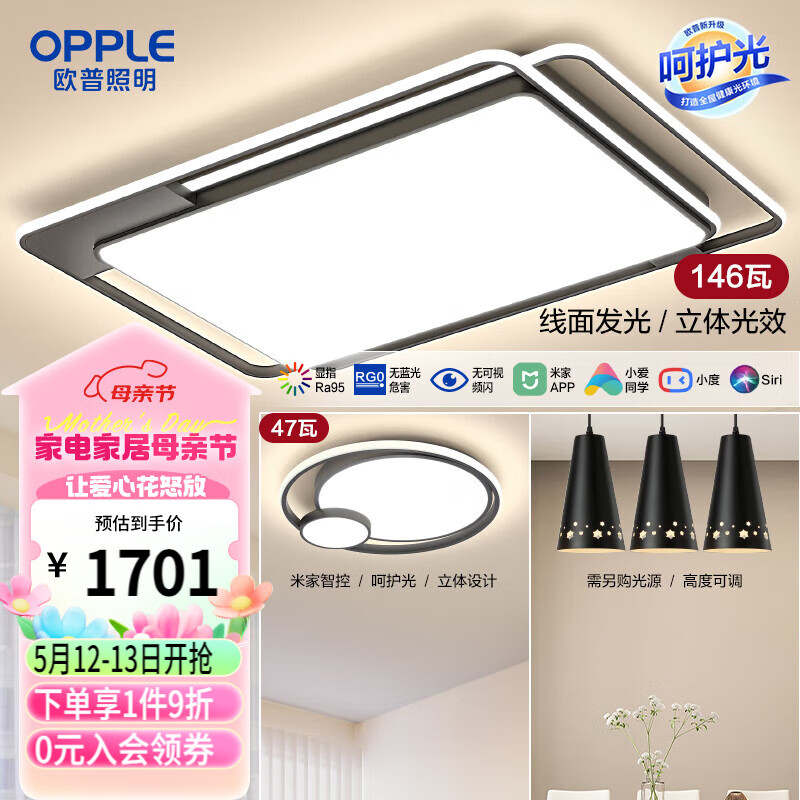欧普照明(OPPLE) 吸顶灯客厅大灯米家智控LED照明灯具套餐2呵护光价格:1890.00元!