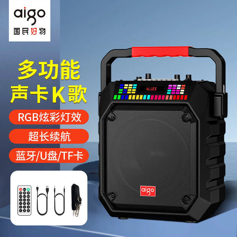 爱国者T166蓝牙音箱户外便携广场舞音响无线K歌低音炮声卡特效无线摆摊收款喇叭 标准版 黑色价格:179.00元!