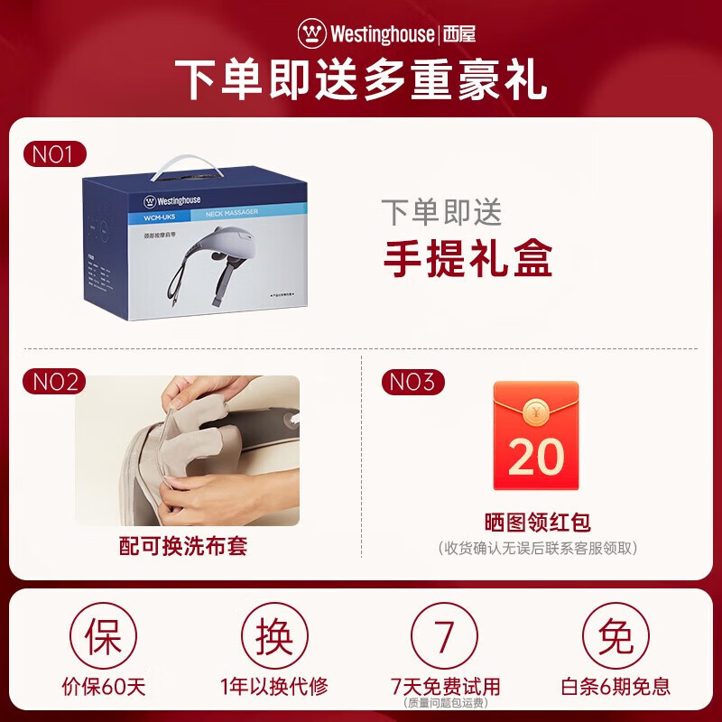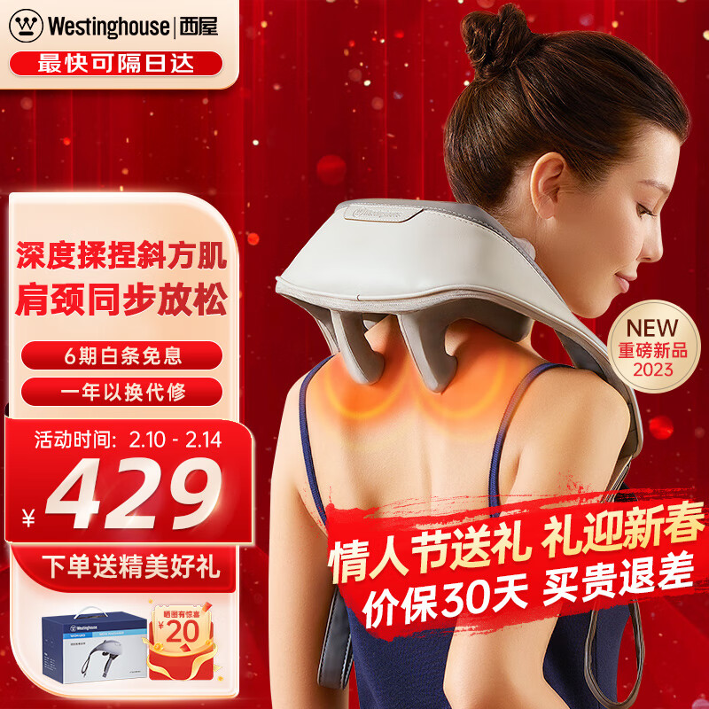 西屋(Westinghouse)UK5颈椎按摩器肩颈按摩器按摩披肩揉捏斜方肌腰部颈部按摩仪按摩枕情人节新年礼物礼品送父母女生价格:509.00元!