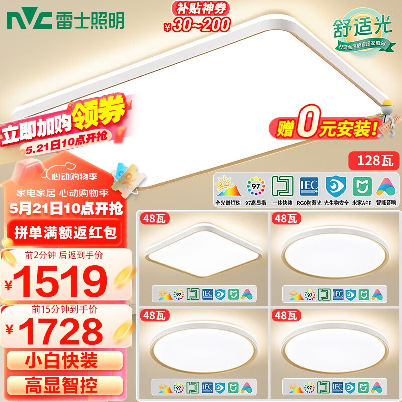雷士(NVC)吸顶灯客厅大灯轻奢风led照明全屋米家智能护眼小白灯沐光S舒适光价格:2998.00元!