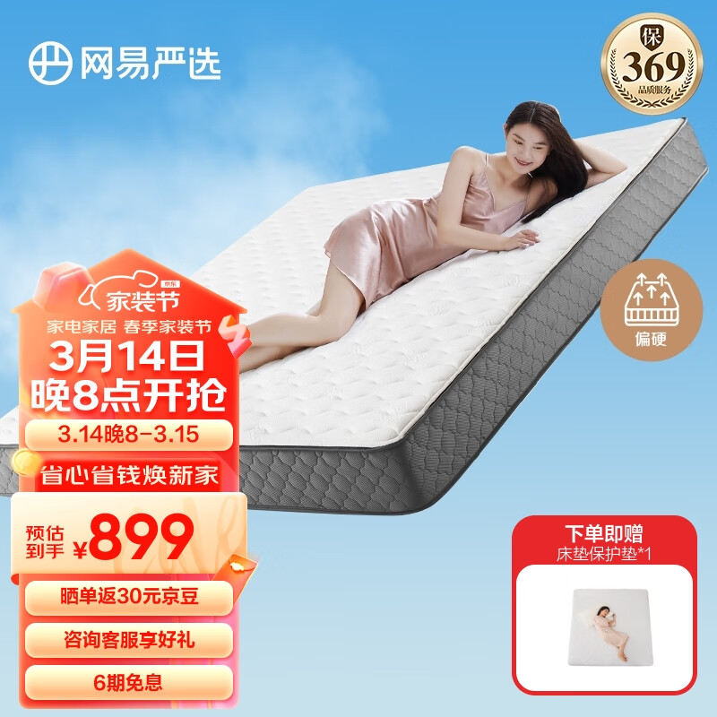 网易严选 弹簧床垫1.5米*2米 乳胶床垫 3D椰棕席梦思床垫 椰棕款价格:999.00元!