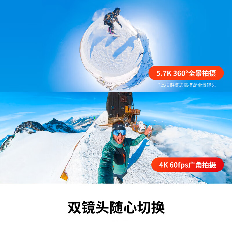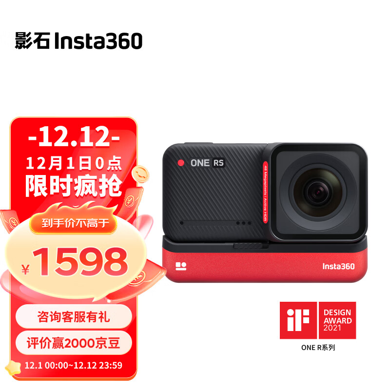 影石Insta360 ONE RS模块化运动相机防抖4K高清Vlog摩托车骑行滑雪潜水路亚(4K增强版)价格:1598.00元!