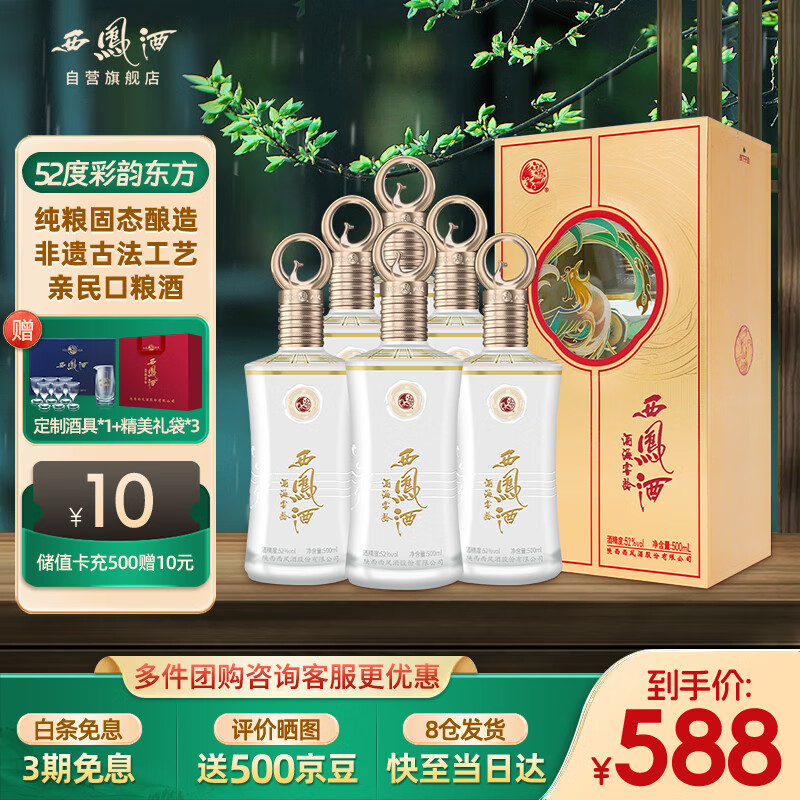 西凤酒 彩韵东方52度陕西纯粮食凤香型白酒海窖龄宴请送礼盒装500mL*6价格:588.00元!