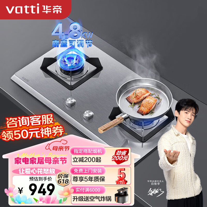 华帝(VATTI)燃气灶家用嵌入式 4.8kW高热效易打理不锈钢面板换灶不改孔燃气灶具灶台JZT-i10064A(天然气)价格:999.00元!
