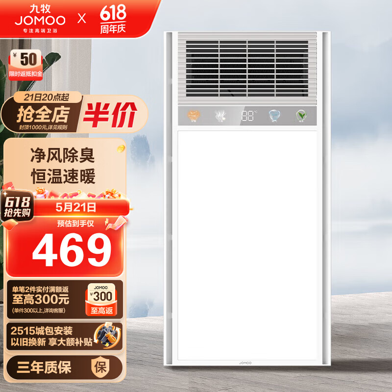 九牧(JOMOO)浴霸集成吊顶多功能取暖器八合一双核无线遥控JDE71-21112/2K33-3价格:629.00元!