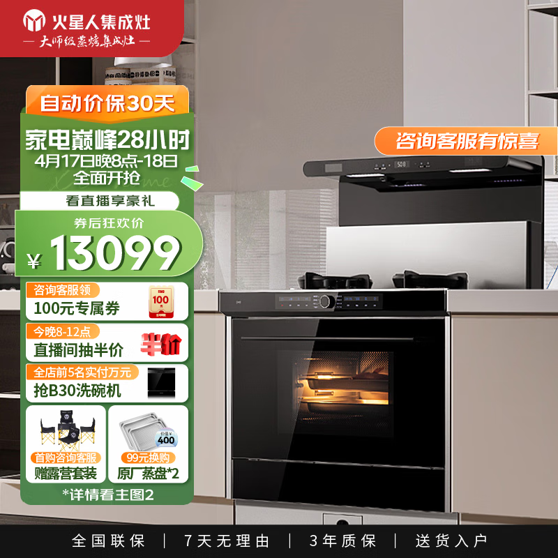 火星人集成灶E70BC 集成灶蒸烤一体 智能蒸烤炸 家用蒸箱烤箱 燃气灶天然气价格:13399.00元!