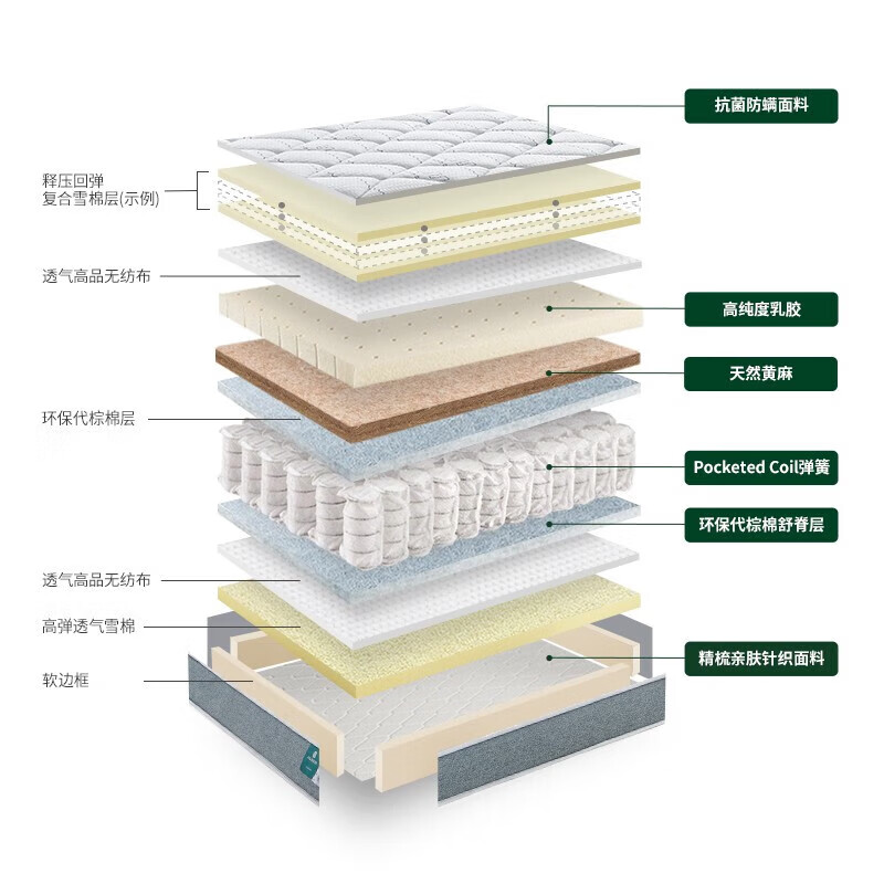 雅兰抑菌面料进口乳胶黄麻床垫 独袋弹簧er童床垫 蘭精灵 1.5*1.9米价格:3839.00元!