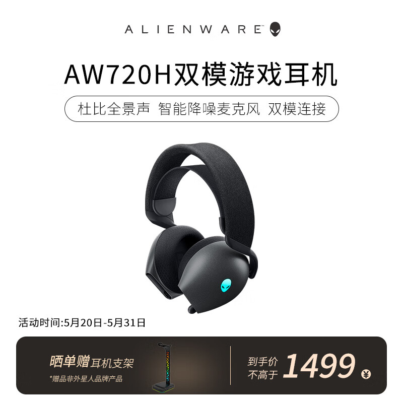外星人(Alienware)AW720H 无线游戏电竞耳机 头戴式双模连接智能降噪 杜比全景声电竞耳麦 送男友送女友 黑色价格:1499.00元!