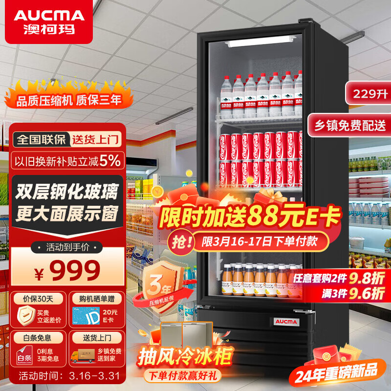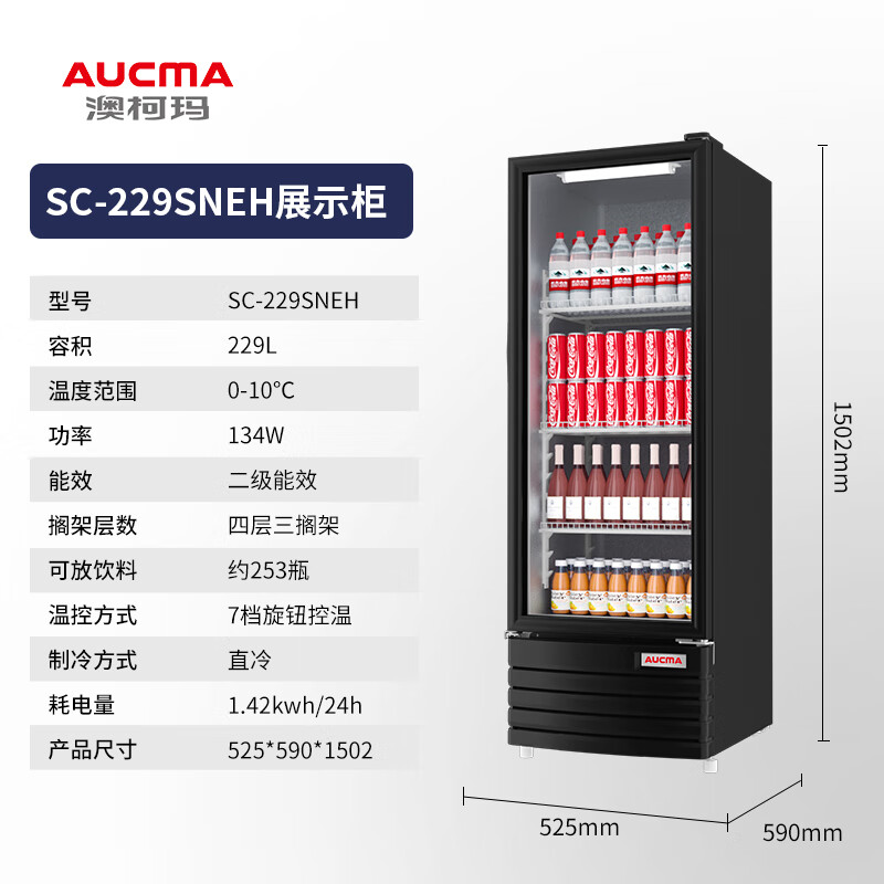 澳柯玛(AUCMA)冷藏展示柜 立式保鲜柜商用冰箱饮料冷柜啤酒柜 超市冰柜冷饮陈列柜单门大容量 直冷实惠省电 229升 SC-229SNEH 新品价格:1099.00元!