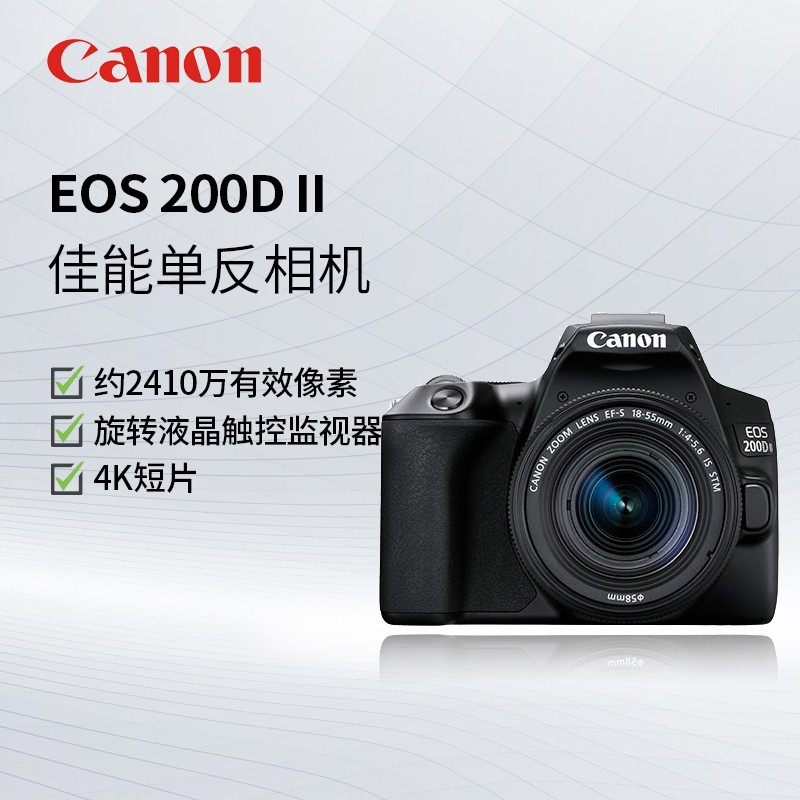 佳能(Canon) EOS200d二代入门单反高清vlog数码照相机视频直播相机 EOS 200D II(18-55mm)黑旅行版价格:8088.00元!