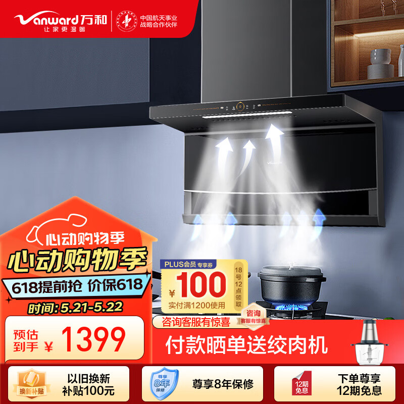 万和(Vanward)顶侧双吸油烟机7字型抽油烟机家用 23m3/min大吸力 智感热清洗 挥手感应大吸力单油烟机WL856价格:1499.00元!
