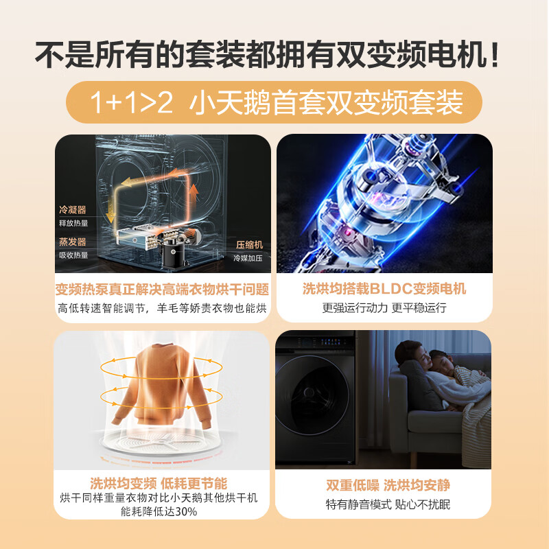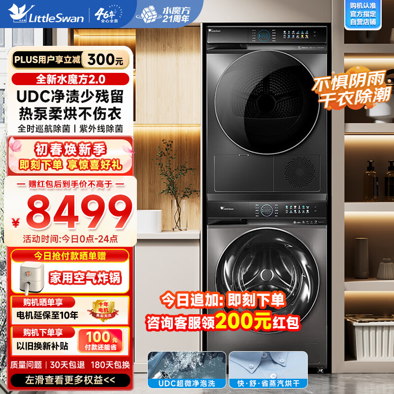 小天鹅(LittleSwan)洗烘套装 1.1洗净比 UDC净泡洗 水魔方10kg滚筒洗衣机+热泵烘干机 TG100VC189MUIT+TH100VH89WT价格:8699.00元!