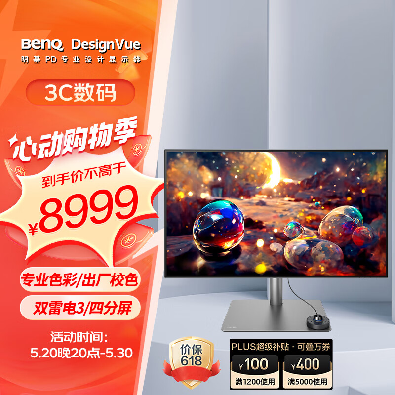 明基(BenQ)PD3220U 32英寸IPS 4K HDR 10bit多色域专业色彩 可四分屏 高分设计绘图电脑显示器(双雷电3)价格:9499.00元!