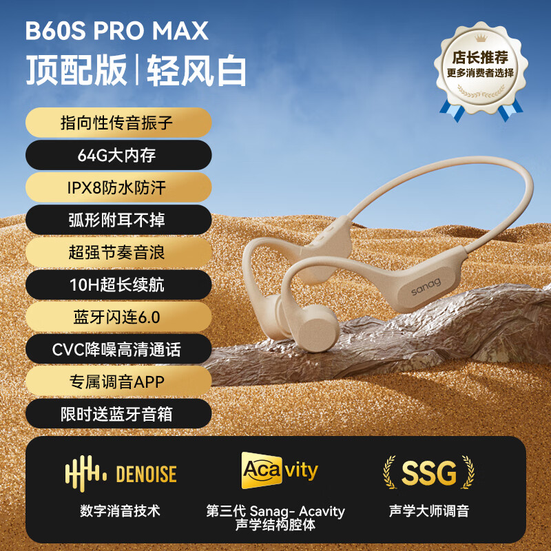 SANAG塞那【央视甄选|QQ音乐认证】B60骨传导蓝牙耳机 开放式运动耳机跑步骑行不入耳游泳耳机 高端礼物价格:459.00元!