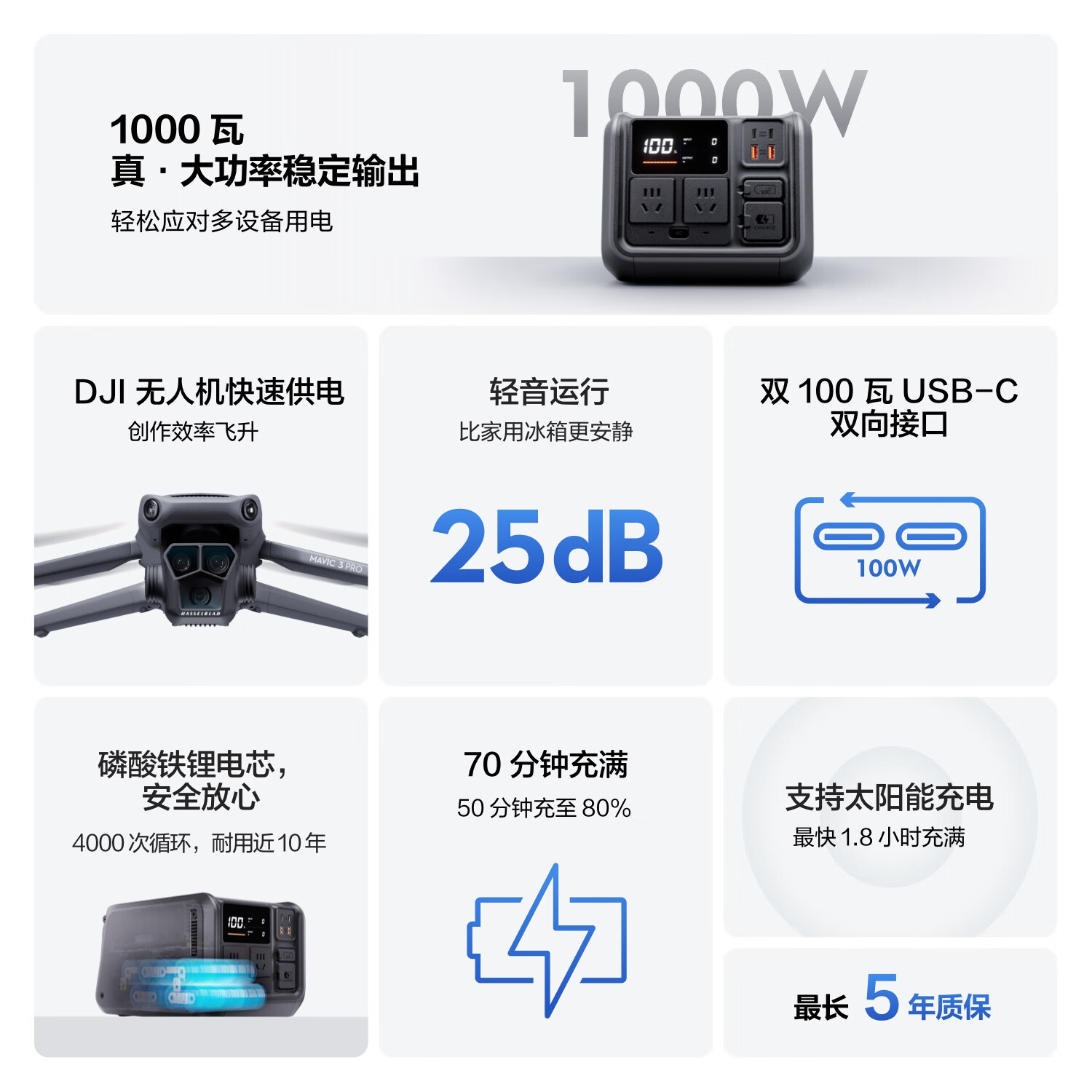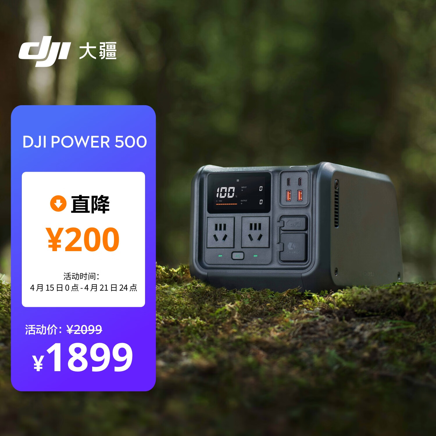 大疆DJI Power 500 户外电源 0.5度电220V 1000W 摆摊露营车载应急备用 便携式移动储能 太阳能充电价格:1899.00元!