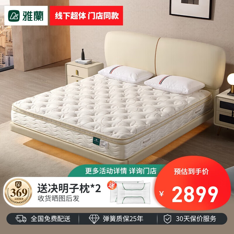 雅兰2CM乳胶天丝?面料软硬双面独袋弹簧床垫 大小姐 1.8米*2米 超体价格:4399.00元!