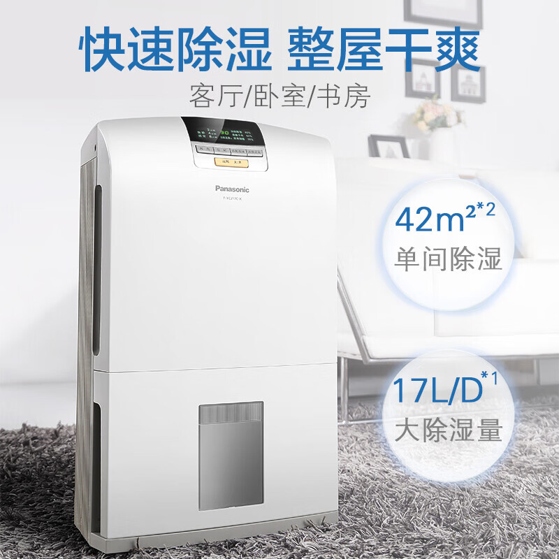 松下(Panasonic)除湿机/抽湿机家用 除湿量17升/天 适用面积20-40㎡ 轻音干衣干燥地下室吸湿器 F-YCJ17C-X价格:2599.00元!