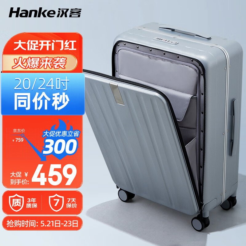 汉客铝框箱前开盖行李箱男拉杆箱女旅行箱大容量24英寸环保灰密码箱价格:759.00元!