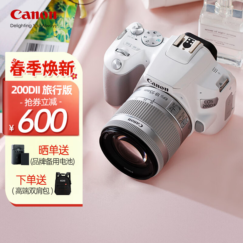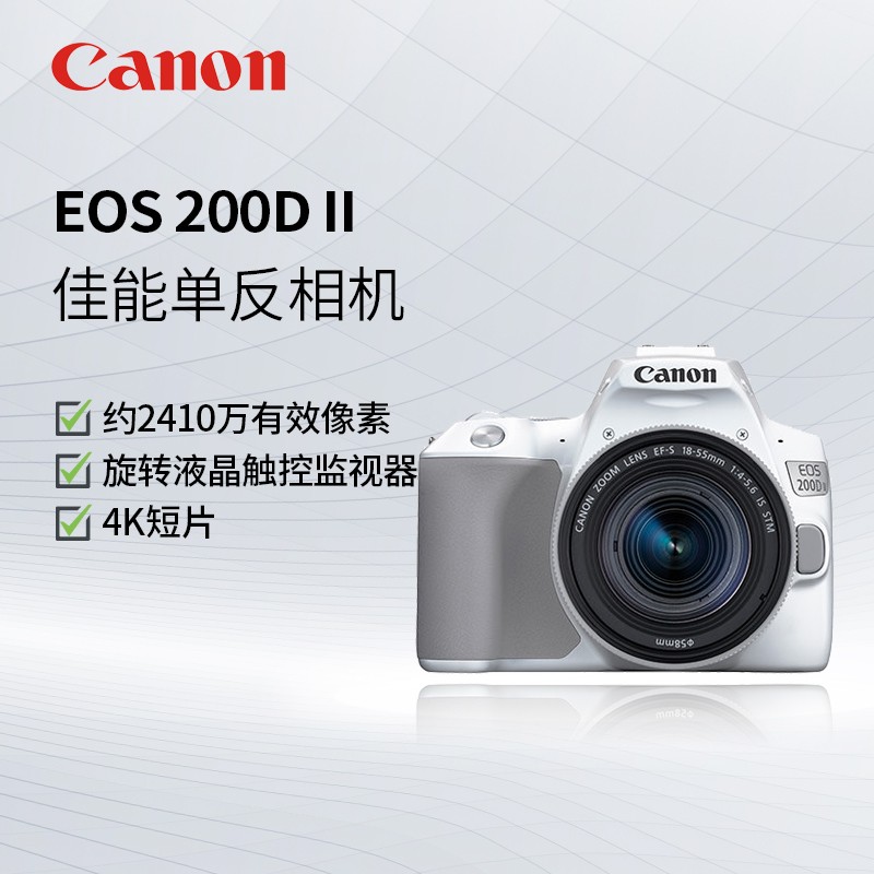 佳能(Canon) EOS200d二代入门单反高清vlog数码照相机视频直播相机 EOS 200D II(18-55mm)白旅行版价格:8088.00元!