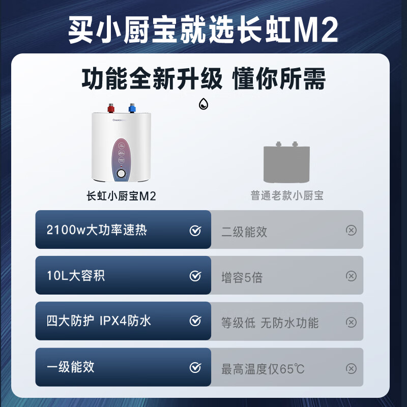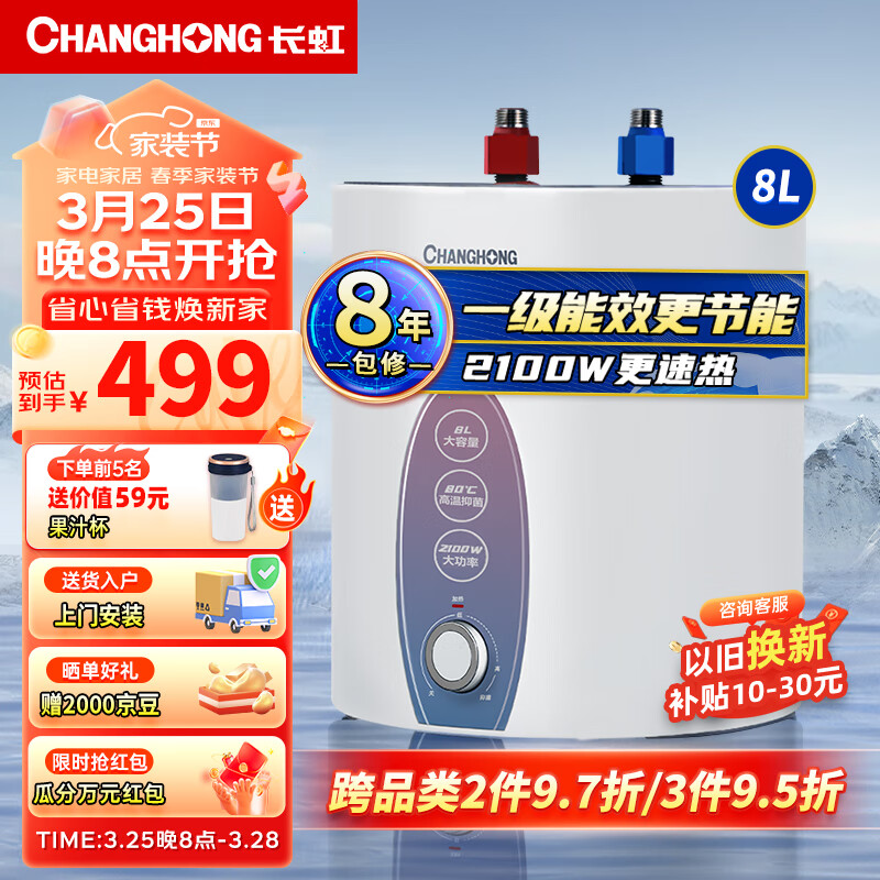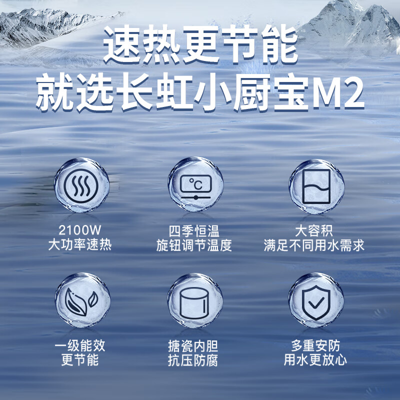 长虹(CHANGHONG)一级能效小厨宝家用电热水器2100W小尺寸15倍增容大水量连续出水 厨房节能速热8M2价格:599.00元!