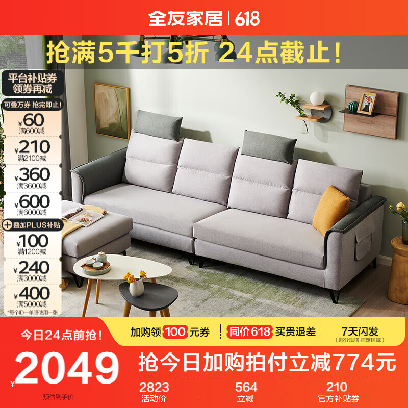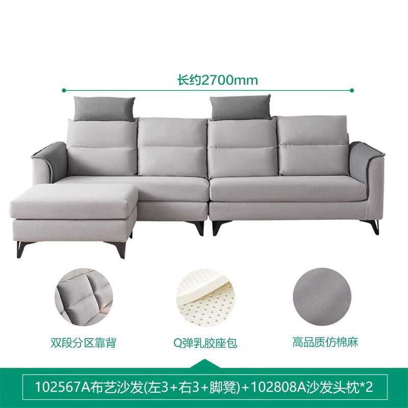全友家居北欧四人位沙发直排客厅小户型布艺沙发凳简约一字沙发102567价格:2823.75元!